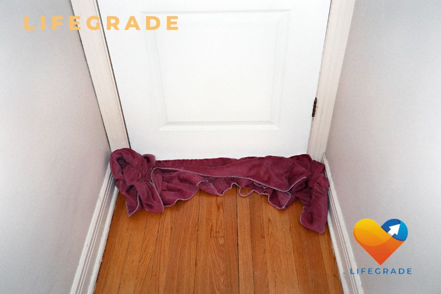 - 오래된 타월을 돌돌 말아 문 아래에 두기