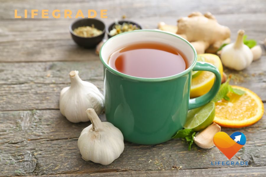 마늘은 강력한 항균 및 항바이러스 성분을 포함하고 있어 감염을 예방하고 치료하는 데 효과적입니다. 마늘 차를 섭취하면 인후염 증상을 완화하는 데 도움이 됩니다.