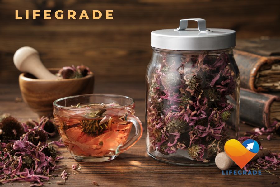 에키네이셔는 면역력을 증진시켜 감기와 독감을 예방하고 치료하는 데 도움을 주는 허브입니다. 인후염 증상을 완화하고 빠른 회복을 돕습니다.