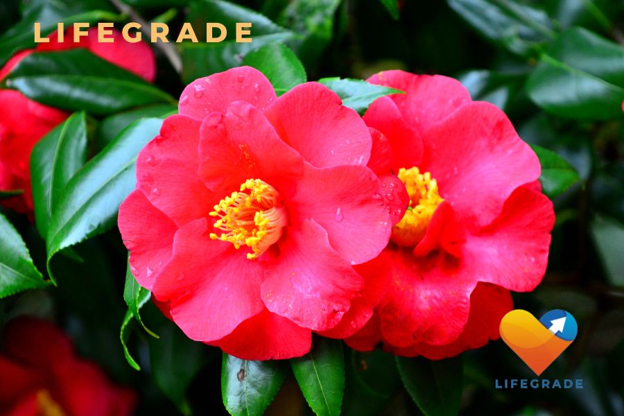 붉은 동백꽃 – 일본에서 특히 송이째 떨어지는 모습이 무사의 죽음을 연상시킵니다.