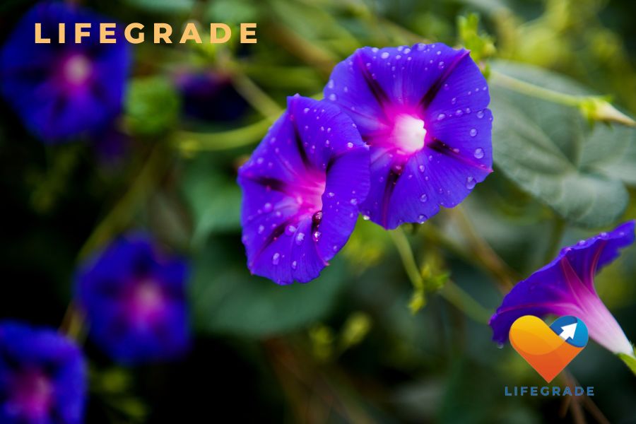 나팔꽃 – 하루 피고 지는 특성으로 삶의 덧없음을 상징합니다.